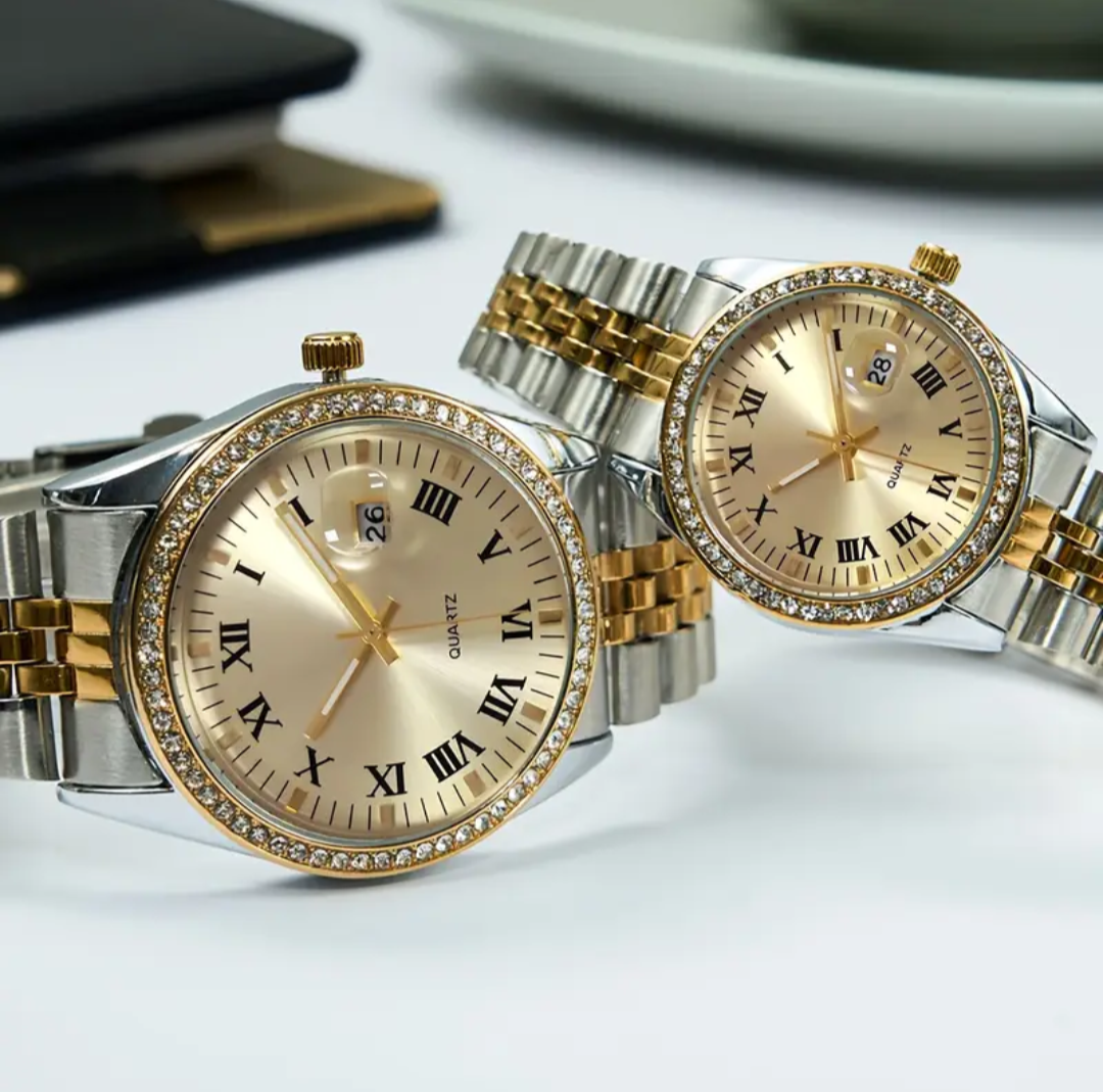 Introducing the **couple Diamond Watch**, a stunning blend of elegance and precision. This timepiece features a sleek design adorned with sparkling blue diamonds, adding a touch of luxury to any outfit. The durable stainless steel body ensures lasting quality, while the sapphire crystal face offers superior scratch resistance. With its water-resistant construction and precise quartz movement, the Blue Diamond Watch is perfect for both everyday wear and special occasions. Elevate your style with this timeless accessory, designed for those who appreciate high-quality craftsmanship and refined beauty.