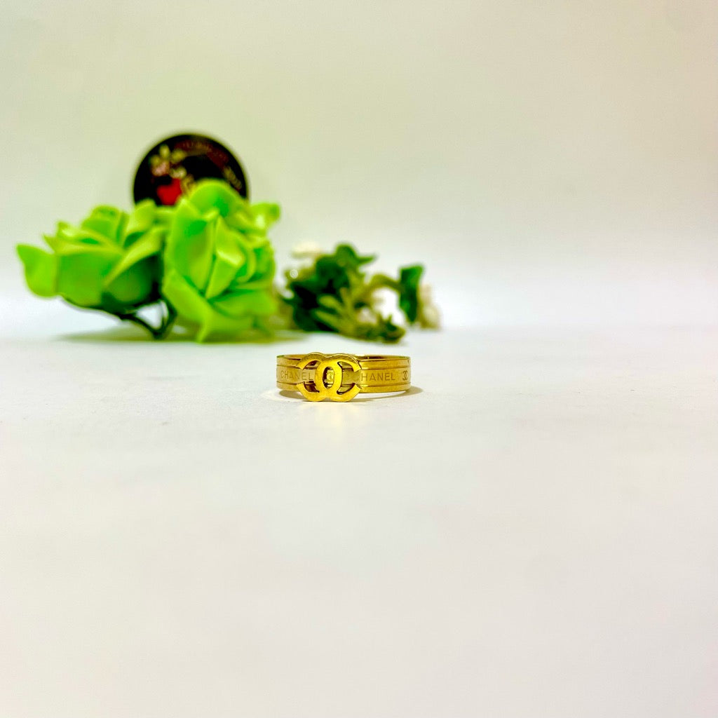 “Introducing our Chanel-Inspired Stamped Ring – a stunning piece that brings iconic elegance to your jewelry collection. Crafted from gold-plated stainless steel, this ring is both waterproof and tarnish-free, ensuring it stays beautiful for years to come. The intricate Chanel-inspired stamp adds a touch of luxury, making it the perfect statement piece for any outfit. Versatile and chic, this ring is designed for those who value style, quality, and sophistication.”