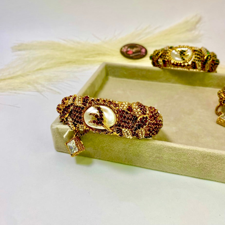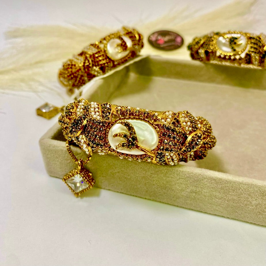 Embrace royal elegance with our Turkish Handmade Pearl Cresent Turkish Handcuff, exclusively from Rangeen Wear.
