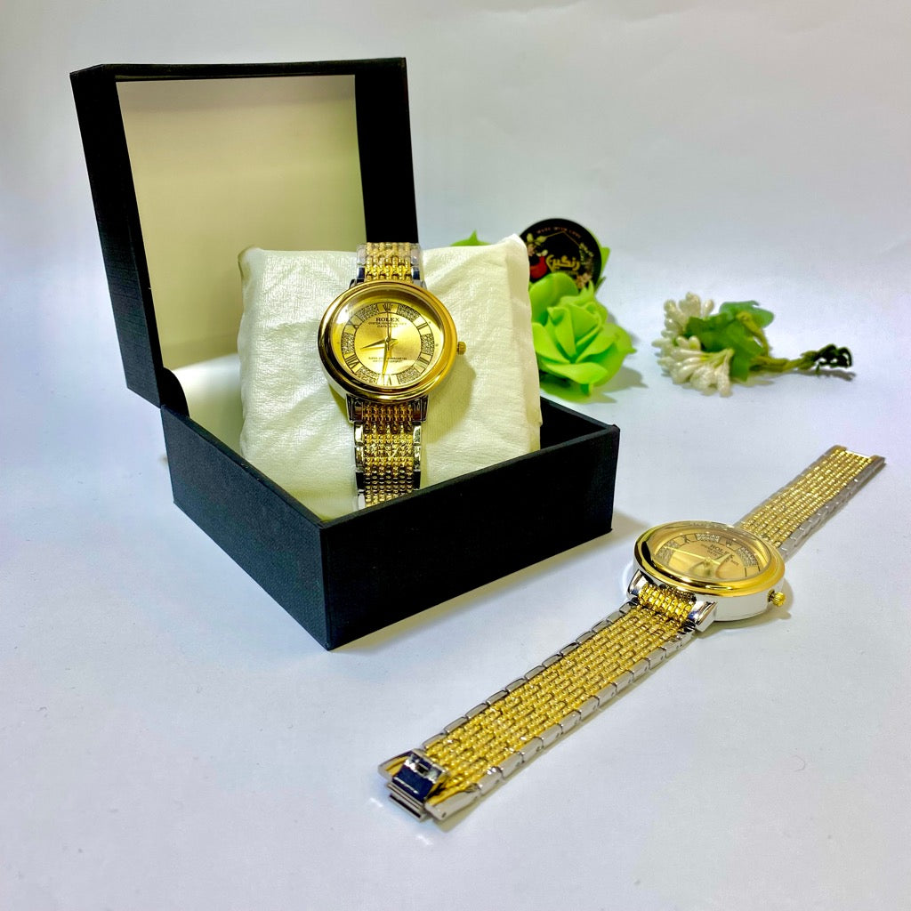 • Features a classic Rolex-inspired design embellished with dazzling zircon stones, adding a luxurious sparkle.