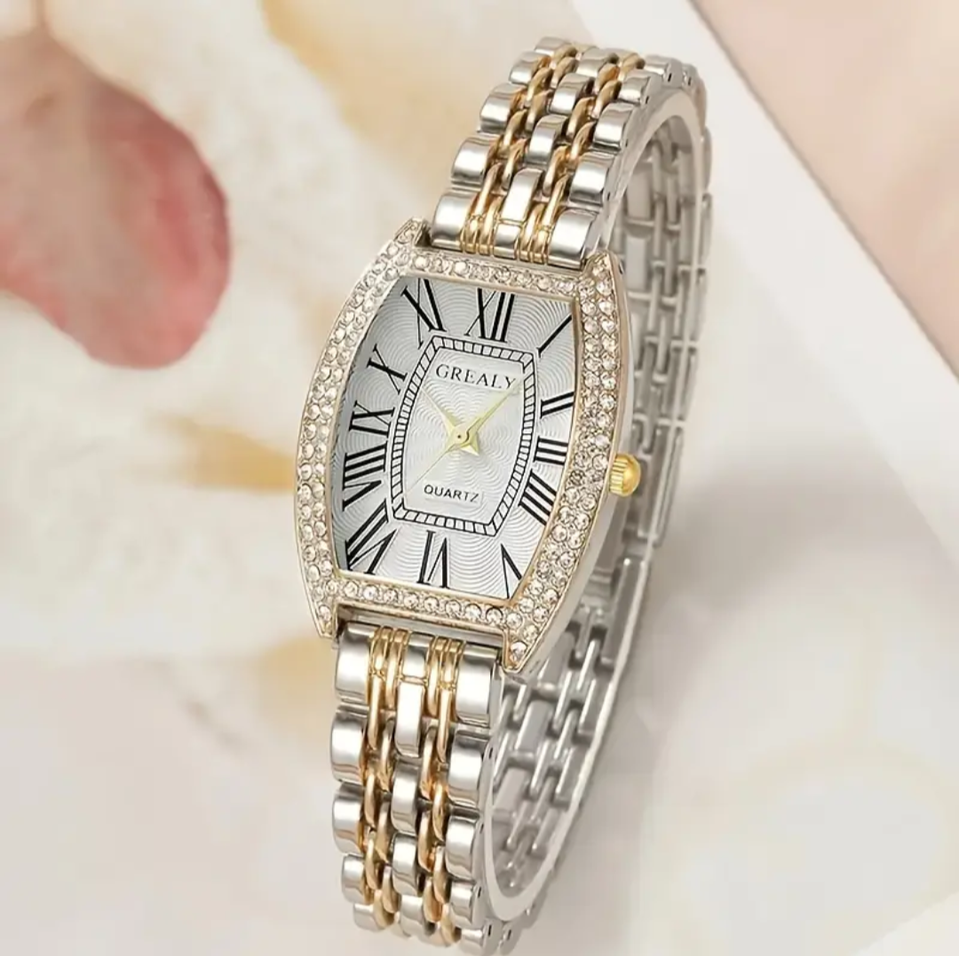 The **Gold Watch with Zircon Diamonds** is a masterpiece of luxury and sophistication. Crafted with a rich gold-tone finish, this watch radiates timeless elegance, enhanced by the brilliance of sparkling zircon diamonds. Each stone is meticulously set, adding a dazzling touch to the classic design. With its precision quartz movement and water-resistant durability, this watch not only complements your style but also provides reliable performance. Perfect for those who seek a blend of luxury and everyday functionality, the Gold Watch with Zircon Diamonds is an accessory that exudes class and refinement.